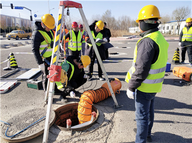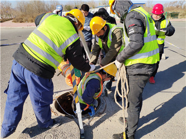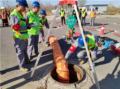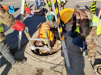 各代表隊(duì)“整理著裝、檢查安全帽、現(xiàn)場分配任務(wù)、測(cè)定風(fēng)向……”他們邊操作設(shè)備邊確認(rèn)要點(diǎn),對(duì)作業(yè)審批、安全交底、設(shè)備檢查、危害告知、檢測(cè)通風(fēng)、井下取物等環(huán)節(jié)進(jìn)行實(shí)操展示,并安全返回,比賽過程銜接有序、每個(gè)動(dòng)作都干凈利落、測(cè)試工作謹(jǐn)慎細(xì)致。充分展現(xiàn)了中潤人孜孜不倦、精益求精的專業(yè)精神,同時(shí)也表達(dá)了中潤通信集團(tuán)提升技術(shù)素養(yǎng)、提供優(yōu)質(zhì)服務(wù)的決心與信心。