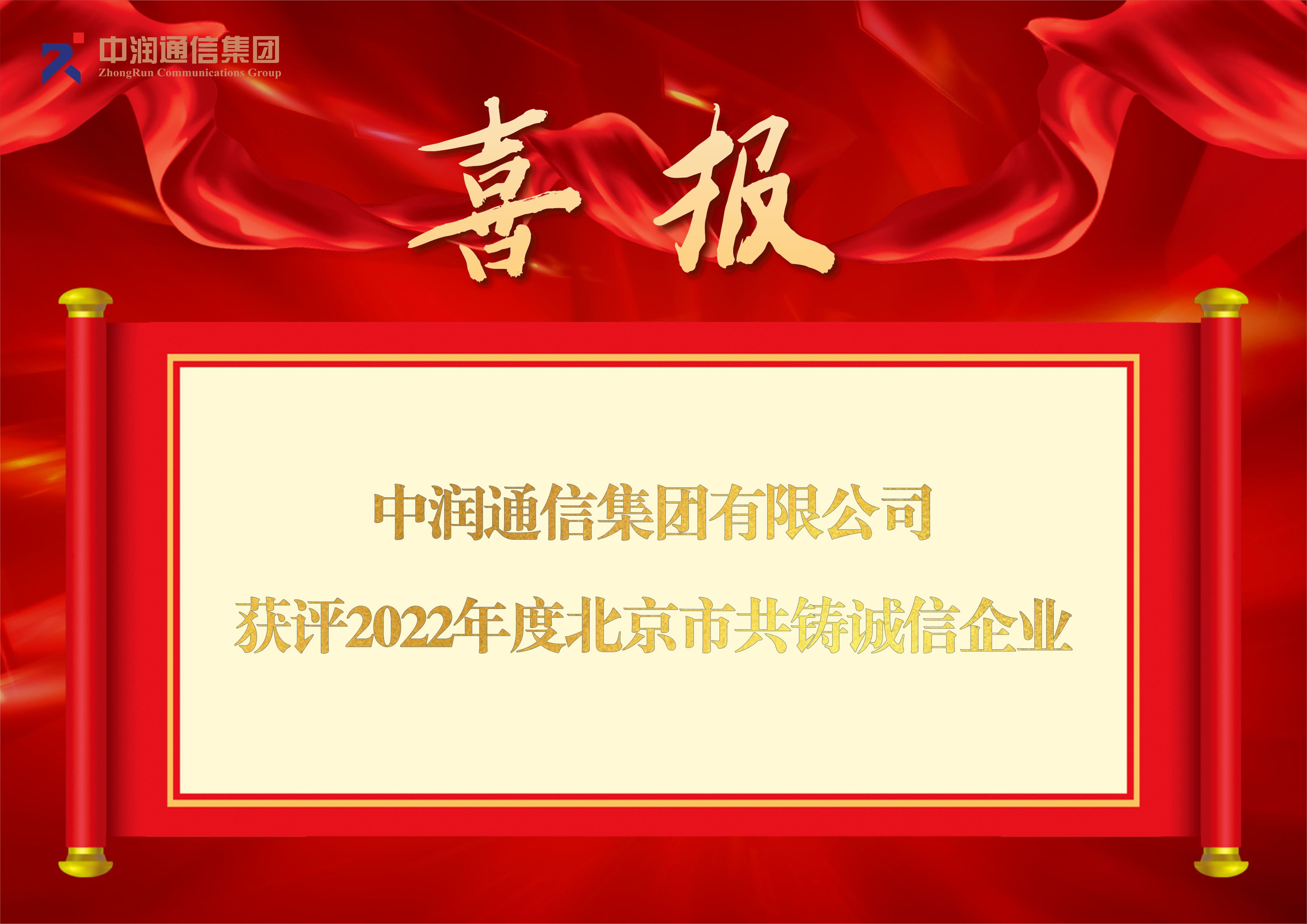 成功獲評(píng)2022年度“北京市共鑄誠信企業(yè)”,是中潤通信履約能力、綜合競(jìng)爭力的集中體現(xiàn),更是社會(huì)各界對(duì)中潤通信在誠信經(jīng)營方面所做努力的肯定。未來,中潤通信將始終堅(jiān)持“創(chuàng)新高效、管理卓越、誠信為本、務(wù)實(shí)貢獻(xiàn)”的管理理念,守信于己、誠信于人、踐信于行,通過不斷提升自身的誠信服務(wù)水平,為建設(shè)好首都、服務(wù)好首都做出更大貢獻(xiàn)。